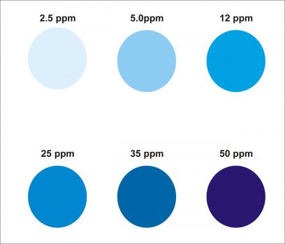 7. Obtain a test result using the appropriate comparator chart, place the glass test jar on colour card & match with various shade of colour .or online www.rxmarine.com/phosphate-test-kit