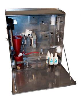 Included in the RXSOL Rig Laboratory are a mud balance, marsh funnel, measuring cup, filter press, Sand Content Kit, timer, and all the reagents and labware for performing chloride ion analysis. An air hose and connections are included to run the filter press from rig air. Rxsol Rig Laboratory has a small sink with hook-ups for rig water. Due to its design, this kit can be custom tailored to meet specific requirements.